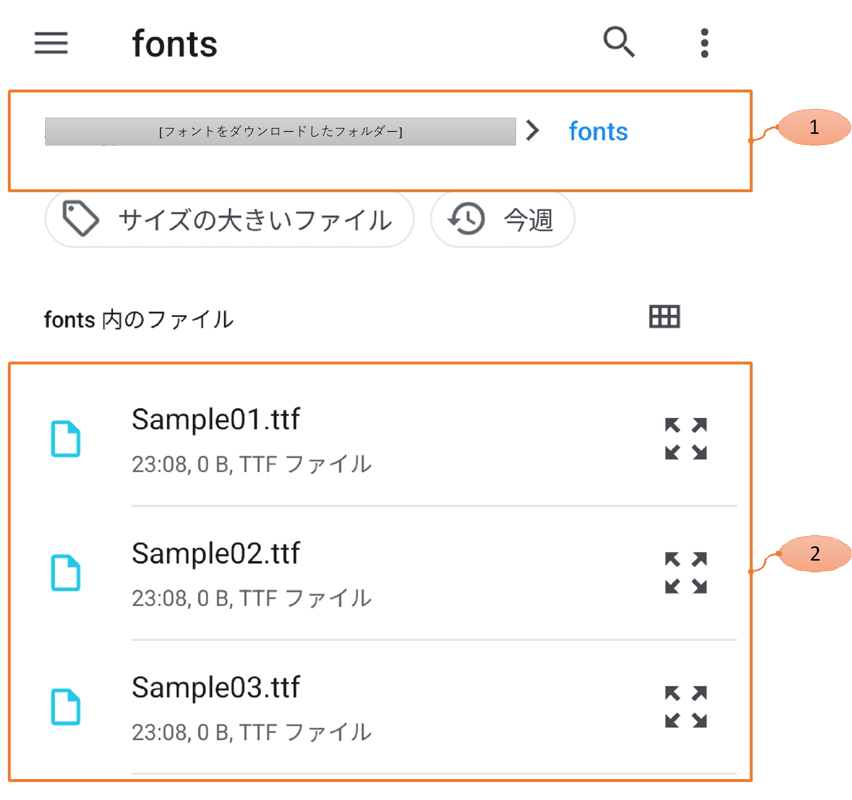 ②フォント一覧